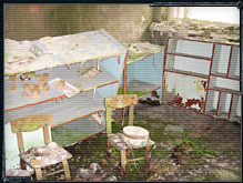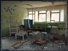 Детский садик "Медвежонок". Ты заходишь внутрь и вспоминаешь себя, ведь тогда, в 86-м, у тебя были такие же шкафчики и ты носила такие же сандалики. А вот и кровать, точь-в-точь как та, где ты проводила тихий час. Но тут все теперь уже не так. Теперь тут сыро, холодно, везде ядовито-зеленого цвета мох, в редкие моменты в окно все-таки пробирается солнышко, но то этого становится еще печальней.